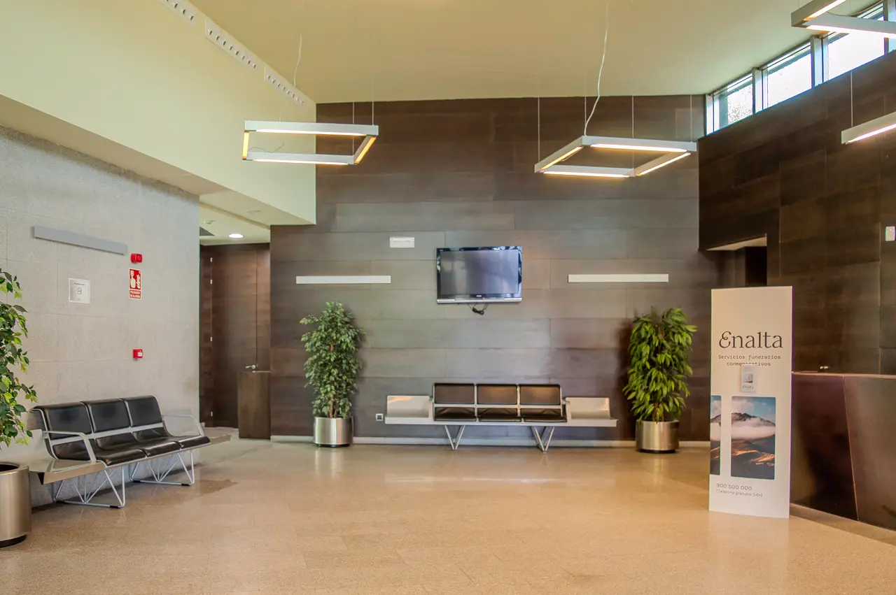 En sus 1002 m2 dispone de 3 salas tanatorio, amplias zonas comunes, cafetería, oficina de atención a las familias, sala de tanatopraxia y amplia zona de aparcamiento para 100 vehículos y 2 autobuses.